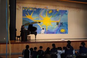 | 【 テーマ「銀河」をイメージしたステージバックが披露されました 】 |