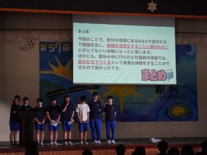 半年間、総合的な学習の時間で学んできたことを、学年ごとに発表しました。地域での探究で学んだこと、職場体験学習で学んだことなどをスライドにまとめ、自分の言葉で堂々と発表していました 。