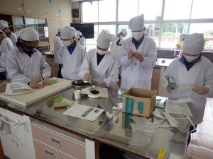 5月に摘んだお茶が、緑茶として完成しました。40gずつ袋に入れて、主に保護者の方に販売します。グラム単位の計測をし、オリジナルラベルを貼った袋に入れて密閉して…たくさんのステップを踏みながら、商品化されます。どんな味に仕上がったでしょうか。